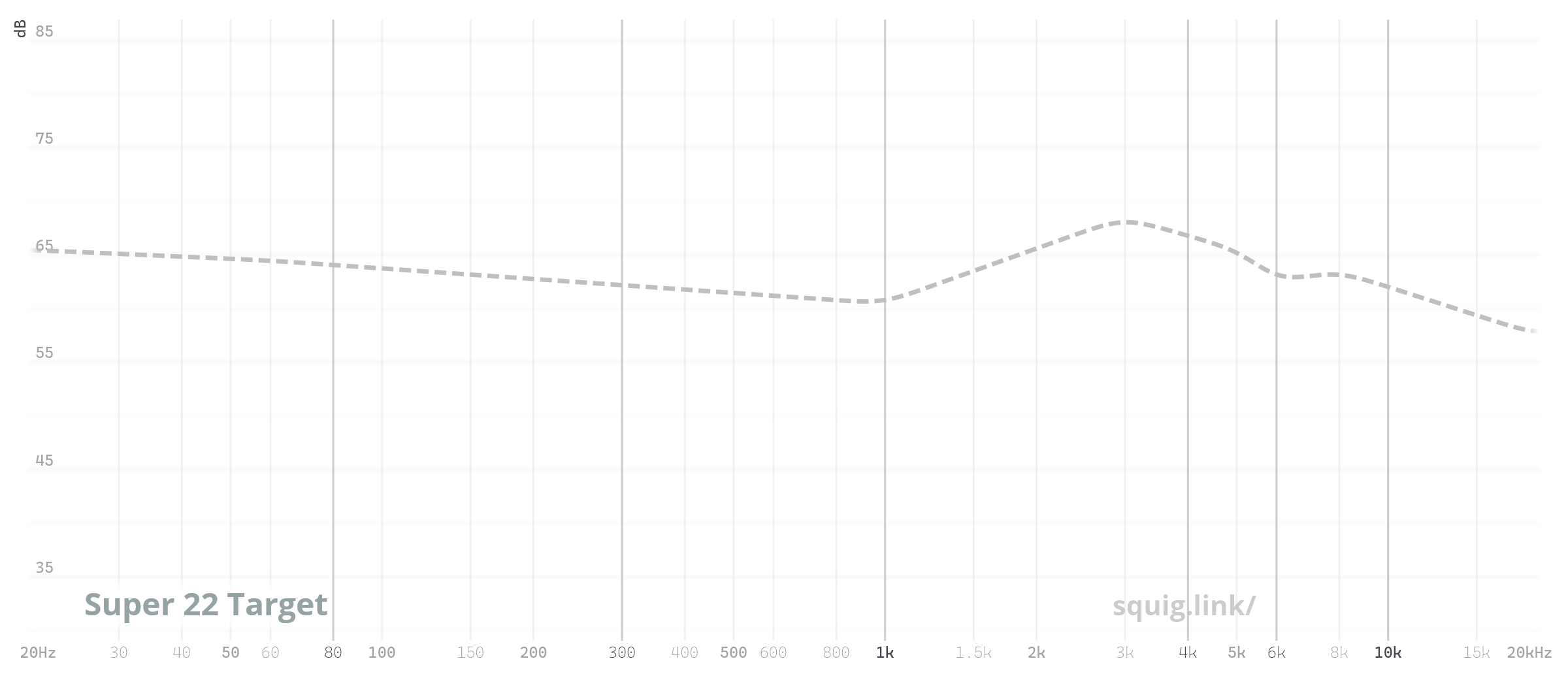 I’m not a huge fan of the Harman curve. It has too much bass for me, and I’m also quite sensitive to the 8KHz region, which is very prominent in the Harman curve. The new Super 22 target curve made by Super* Review is much closer to my own personal tastes, and served as the basis for my own target curve.